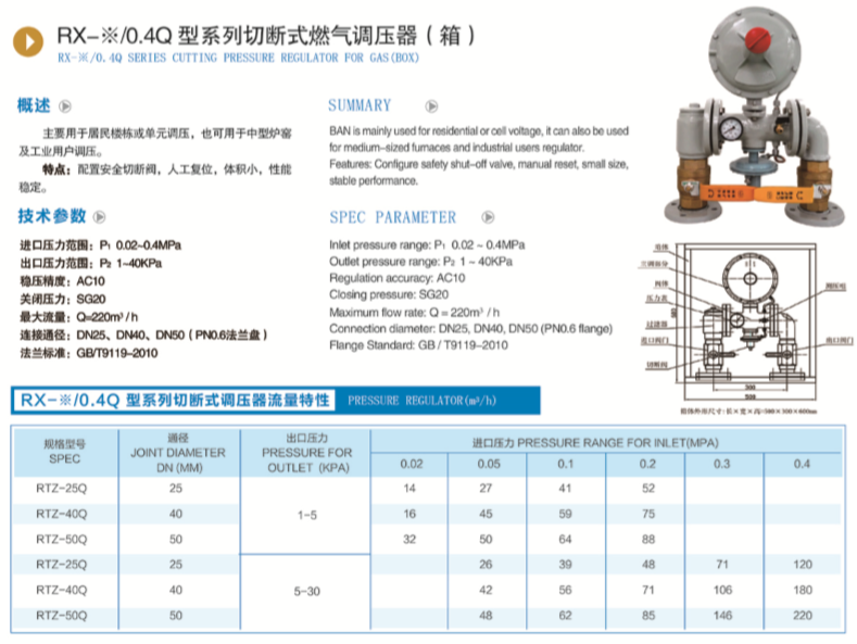 RTZ-0.4Q型系列切斷式燃?xì)庹{(diào)壓器(箱)